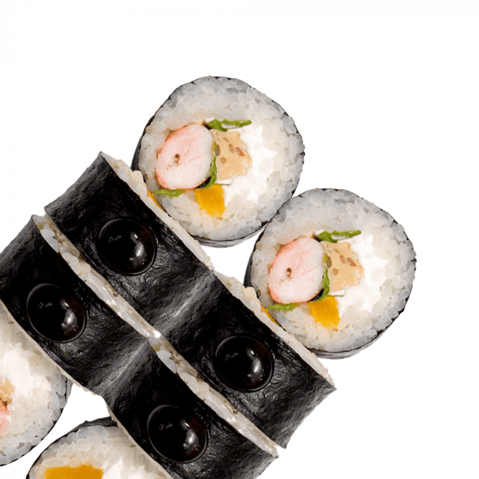Склад: рис, крем-сир, креветка, айсберг, манго, японський омлет, унагі.
