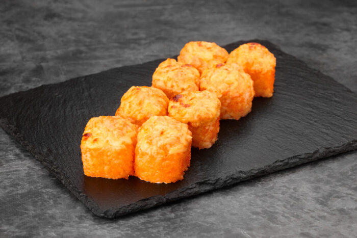 рис, норі, лосось, сир філадельфія, пармезан, ікра масаго, моцарела, майонез, соус шрірачча,огірок