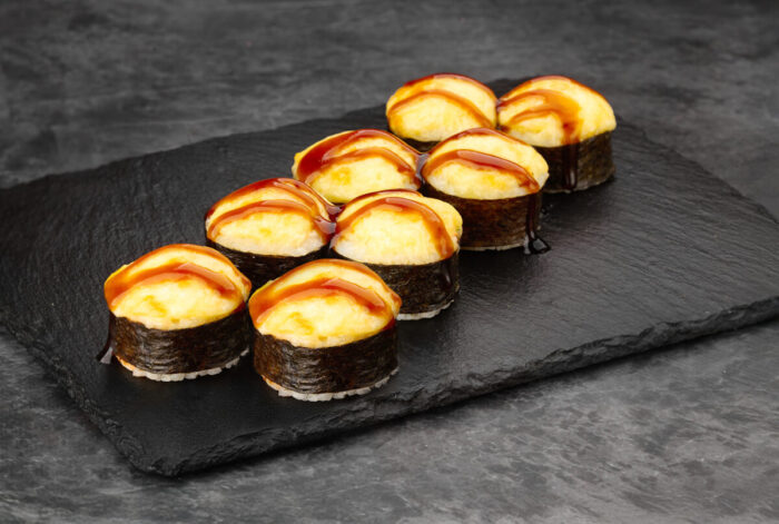 рис, норі, вугор , сир філадельфія, огірок, майонез, пармезан, моцарелла, соус унагі